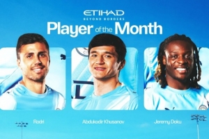 体育资讯3月28日讯 曼城公布了3月份队内最佳球员候选,罗德里、胡桑诺夫和多库入选。