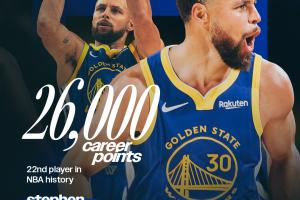 体育资讯12月26日讯 勇士与独行侠的圣诞大战第三节,库里砍下生涯第26000分!