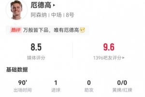 下一篇: 萨卡本场6射2正 1助攻+4关键传球 5过人3成功+6传中2成功 获7.6分