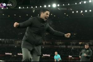 体育资讯12月31日讯 阿森纳vs维拉第78分钟,阿森纳将比分改写为4-0!进球后阿尔特塔兴奋庆祝!