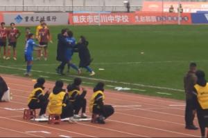 比赛伤停补时阶段,0-1落后的大渡口队打入绝平进球,但被主裁判吹掉,认定皮球先出了底线。大渡口球员对判罚非常不满,纷纷找主裁判要个说法,一度上升到肢体冲突,主裁判则在众多安保的保护下退场。