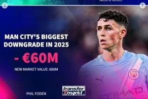 体育资讯1月4日讯 2025年已经过去,《转会市场》也统计了9大豪门的年度身价上涨和下跌最多球员情况。