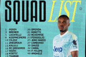 尤文客战萨索洛大名单:伊尔迪兹领衔锋线DV9伤缺,布雷默在列