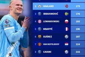 五大联赛单一球队最快达成150球排行:C罗149场居首,哈兰德173场
