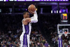 上半场,国王球星威少表现不错,首发出战18分半,投篮7中3,三分球4中2,拿到8分1篮板5助攻的数据,正负值+7。