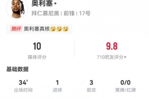 上一篇: 复出首战送助攻!穆西亚拉助攻奥利塞破门,奥利塞本场1球3助