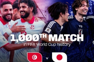 根据国际足联的数据统计,日本和突尼斯的对决将是世界杯历史第1000场比赛,这将是一个历史性的时刻。