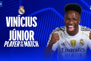 体育资讯1月21日讯 欧冠联赛阶段第7轮,皇马6-1摩纳哥。赛后,维尼修斯被评为全场最佳球员。