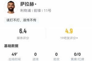 萨拉赫半场表现: