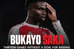 值得一提的是,萨卡已经连续13场比赛上场后没能收获进球,他本赛季各赛事出场31场比赛,总计贡献7球5助。在上个月德转身价更新后,萨卡从之前的1.4亿欧元下降至现在的1.3亿欧元。