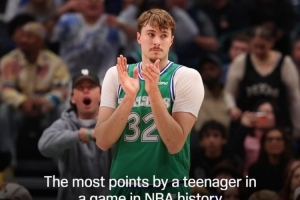 据统计,49分创NBA历史青少年球员(13-19岁)得分纪录。