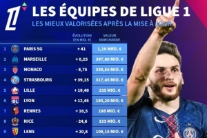 德转列法甲各队身价榜:巴黎11.9亿欧居首,第二到第五共计12.9亿