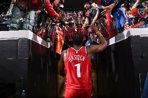 季后赛哈登出战了13场比赛,场均出战39.8分钟,得到19.8分5篮板8.6助攻1.2抢断1盖帽,投篮命中率44.2%,三分命中率37.4%,罚球命中率86.2%;快船两个赛季都止步于首轮。