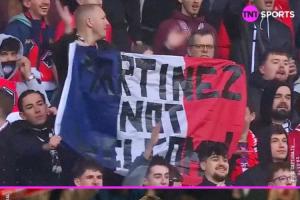 马丁内斯出场热身时遭里尔球迷狂嘘,还有里尔球迷拉横幅“马丁内斯不受欢迎”。