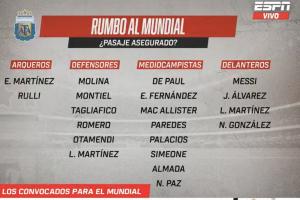 激烈!ESPN:阿根廷世界杯名单已锁定20席,16人争夺最后6个名额